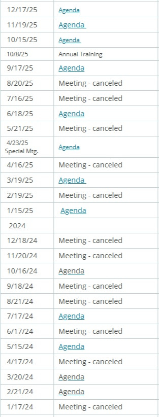 The data shows a clear and significant increase in the frequency of cancelled meetings over time, limiting the commission’s ability to perform its oversight duties. The operational collapse of the Minimum Housing Standards Commission (MHSC) is starkly visible in its meeting records. In 2021, a single meeting was cancelled due to the extraordinary circumstance of the COVID-19 pandemic, reflecting normal civic function;