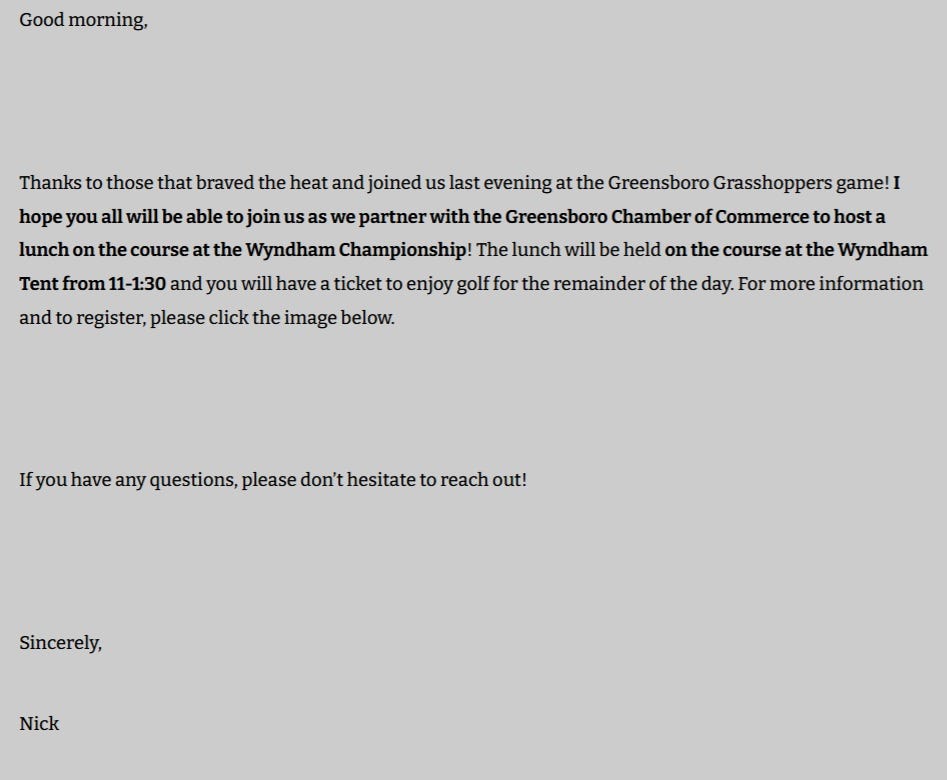 After a recent Cone Health ticket giveaway to a Greensboro Grasshoppers game, the Wyndham was offered;