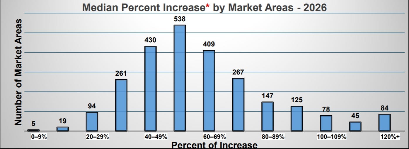 One in Five Guilford Market Areas Saw 80%+ Median Increases;