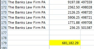 The $681,182.29 total suggests this was a sustained source of business for The Banks Law Firm, authorized by its former partner.