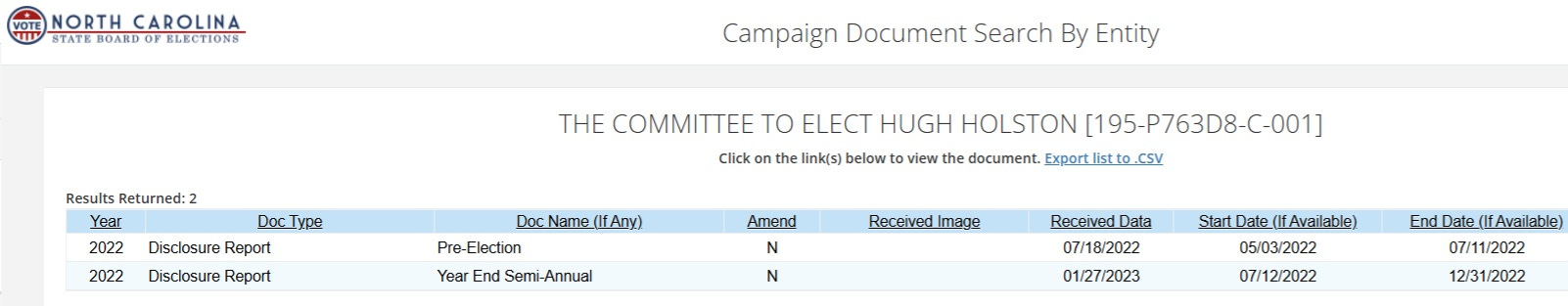 Robbie Perkins and Hugh Holston's Pre-Primary Campaign Finance Reports are Missing