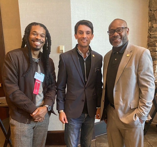 Mayor Abuzuaiter, former City Attorney Chuck Watts and City Manager Trey Davis at a TREBIC event;