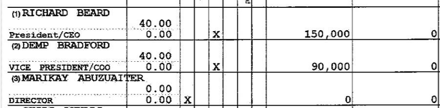 The tax return also says Both Beard and Demp Bradford both work 40 hours a week for the foundation, which is highly unlikely;